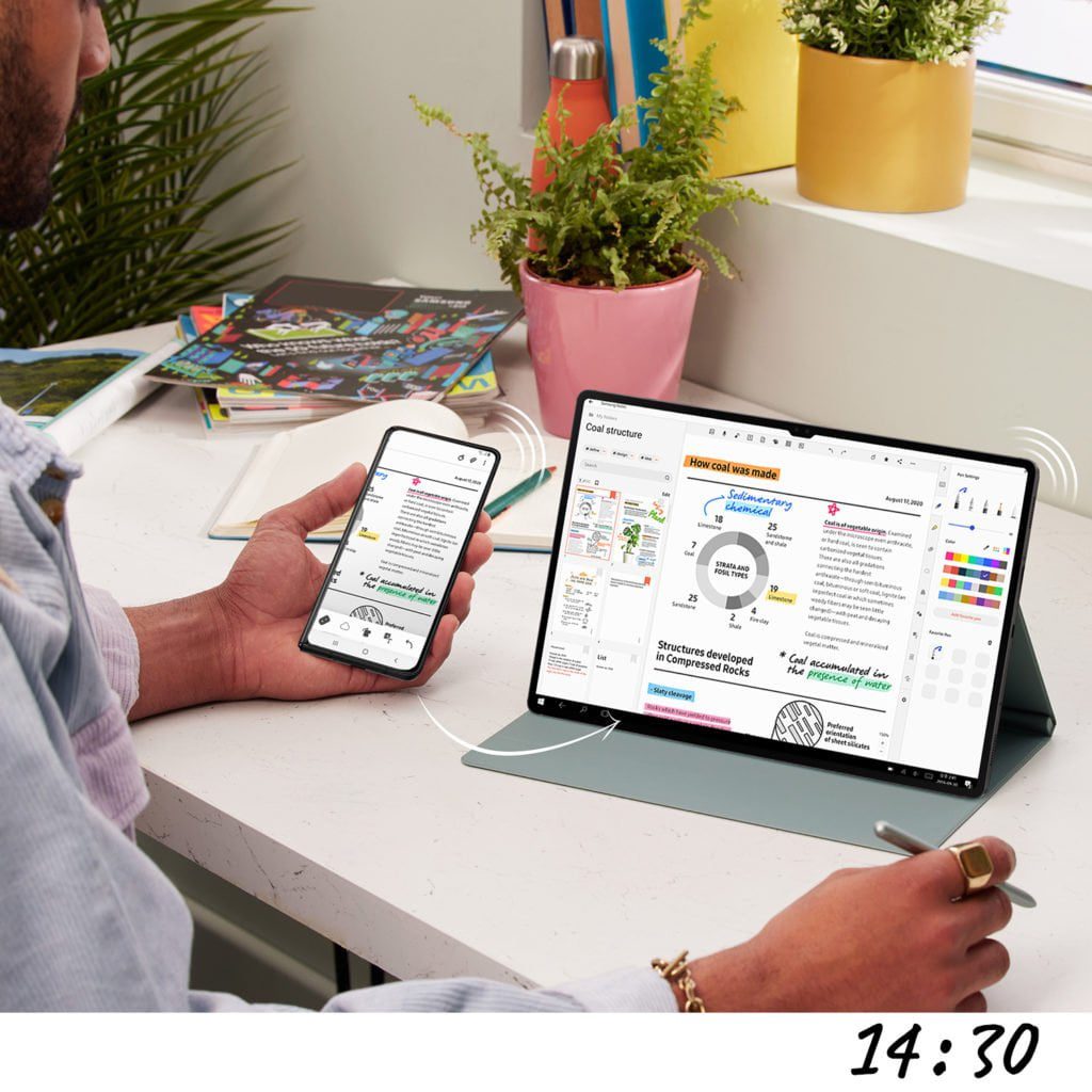 S Pen greifen und auf dem großen Display des Galaxy Tab S8 Ultras deine Ideen in Form bringen. Denn Samsung Notes und Smart Switch synchronisieren Inhalte automatisch auf allen kompatiblen Geräten, sodass du keine Zeit damit verlierst, Daten mühsam hin und her zu schieben.