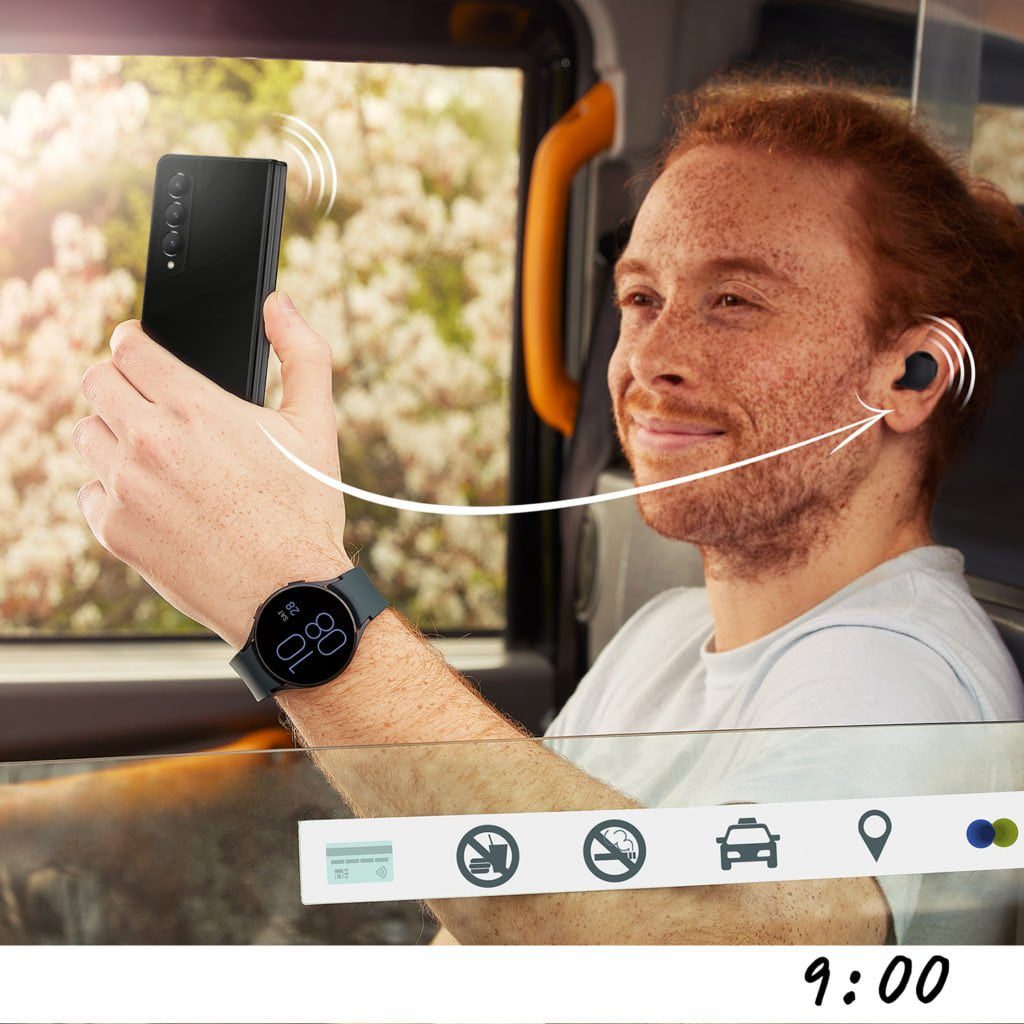 Während du noch unterwegs bist, klingelt dein Galaxy Z Fold4 und die Galaxy Buds2 Pro wechseln automatisch die Verbindung von der Galaxy Watch5 Pro zum Galaxy Z Fold4, sodass du in klarer Sprachqualität telefonieren und einen neuen Auftrag übernehmen kannst.